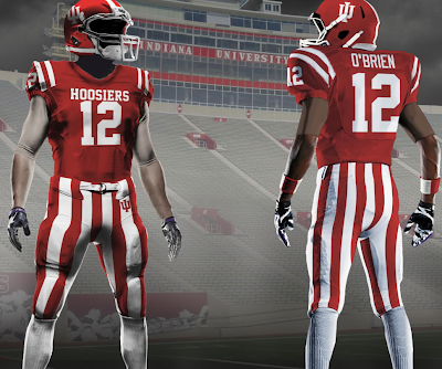 Before I get into my biased look at IU's new looks, lemme say one thing in all seriousness- Fred Glass got part of this right, yet again. He's doing everything he can to generate interest and energy into a sleepy football program...they've invested money, tried to innovate and have marketed a decidedly lousy product as much as possible. And there have been more than fifty or sixty people in IU's Memorial Stadium...so his efforts aren't in vain. But a few of these helmets are simply stabs in the dark.