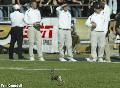 By the way, here's a picture of the rabbit that got on the field during Saturday's contest (reminded me very much of the same thing that happened back in '93, I believe).