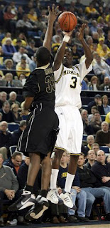 For one thing, Manny Harris caught fire. He was jacking up threes from wherever he felt like it and they were going down with more frequency than an Ann Arbor co-ed (hey-yo!). I knew it was bad when Manny made an awkward-looking turn and shoot move where his legs were sort of splayed out in two different directions and we had a hand in his face and the ball still rattled home for three. Not much you can do when a guy is unconscious like that. Well-done, Manny. I dare say you made up for a) getting booted from the Jan 31 game, and b) whatever it is you did to get your ass benched in the loss to Iowa. I'd say this win over a ranked Boilermaker team more than evens out the loss to that lousy Hawkeye team.