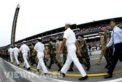 That said, what occurs before the race might be equally important for me. I love the fact that Memorial Day is an important part of race day. Real heroes are paraded around the 2.5 mile circuit...Some old, some young, but all worthy of more cheering than a New Zealander, Brazilian or American who is only circling the same track for their own recognition. The playing of taps, the fly over and the singing of God Bless America always bring me to tears...as I feel so blessed to have been born where I was born when I was born. Even Jim Nabors welcoming me home gets me sobbing.