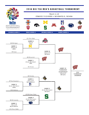 I also think Wisconsin is the smart pick for this tourney. Not because I don't think the Boilers can beat them, because I do. Purdue honestly should be 2-0 against Wisky this year (as usual), but poor FT shooting doomed the Boilers in Madison. I just think Wisconsin is well-coached, talented and kind of under the radar. As T notes in his post, they're the only team to beat all three co-champs. Pretty impressive. (And pretty frustrating, I would think. Beating all three co-champs and finishing as a bridesmaid?)