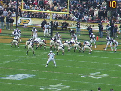 As our buddy Ryan from The Victoria Times predicted, the rain stayed away from West Lafayette on Saturday afternoon, but the wind didn't. It was pretty chilly at the commencement of the contest, but the Boilers were smoking hot to start the game. An early 14-0 lead made it look like homecoming might be a laugher versus the once-mild Cats...But, as the second quarter came to a close, Purdue was +4 in the turnover category, but was knotted at 14. A questionable call kept NW's last drive of the half alive, and Fitzgerald and company took advantage with a hook and lateral to score as time wound down in the opening half.