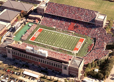 The worst venue I've ever visited, far and away, would have to be the University of Illinois' Memorial Stadium. My hate affair with this place began when I first took my seats and realized I couldn't see the other sideline while sitting in my chair. My feelings only grew as I went to the men's room and took a leak on a black rock wall that they called the toilet. I was lucky enough to visit the stadium in the year that the Bears played there...so I saw her at her best; and she still smelled like the manure from UI's school of agriculture (which fittingly filled my nostrils for the entire contest. Her cost was a mere $1.7 million to be built back in 1923. Sadly, she still hosts Ron Zooks Illini each week and 71,000 can come to witness UI play there...too bad only about 50,000 will be able to see all of the action on the field. She is currently under renovation. Thank goodness.