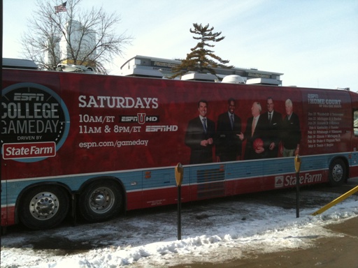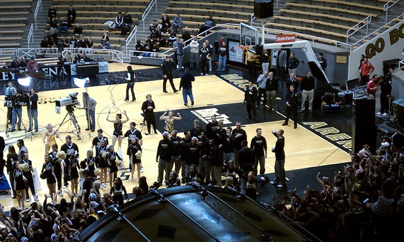 ESPN's College Gameday filmed two hourlong shows (one on ESPNU and one on ESPN) in Mackey Arena today and the students brought it. There was a buzz on Twitter about the experience and even tweets from non-Purdue folks saying that anyone who wants tips on how it should be done should check out the Paint Crew.