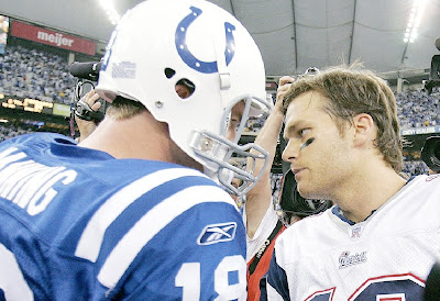 In case you haven't guessed it, I thought the hype leading up to the Colts v. Pats game was ridiculous. While it is good to see two undefeated teams playing mid-way through the season, it is still mid-way through the season. Both teams really wanted to win and the game had some playoff-like intensity to it...but the playoffs it was not. One thing I really like and have liked about this series of games is how this is a true rivalry, and both sides seem to not like the other too much. There's note enough of that in sports, in my opinion.