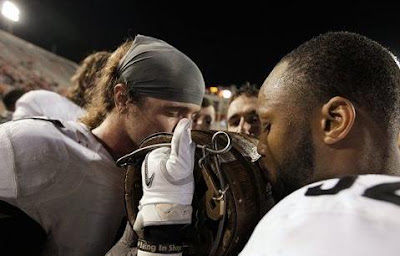 Purdue continued with the two-QB "system," as Caleb TerBush again started but was relieved by Robert Marve once the Boilermakers were behind in the game. Marve's play was fairly nondescript before he took himself out of the game late in the second quarter. I have not yet seen an update on the reasoning for this, but one wonders if it has anything to do with lingering effects from the shots he took last week at home against Iowa.