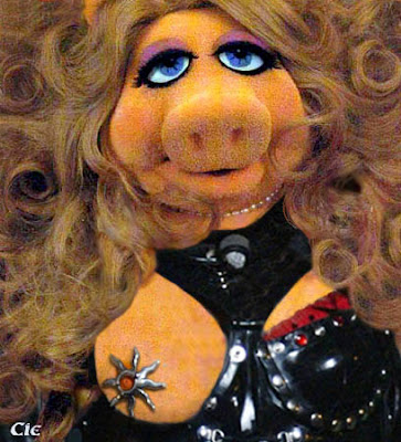 First up, everyone's old fave, Miss Piggy. I mean, if you've got to come down with swine flu, here's the nicest way to get it. (Also, sad to see Miss Piggy has turned to S&M queen.)