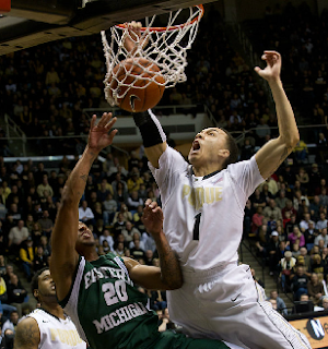 Kelsey Barlow only had 5 points, 2 rebounds an assist and a steal...but his defense made his presence impossible to ignore as he completely disrupted EMU's offense time and again. TJohn had 4 turnovers...but also had three steals. He missed five free throws...but made a couple shots when the game was a bit closer than it should have been in the first half. He finished with 9 points and is improving, but isn't ready to start; yet. AJ had another solid game and finished with 7 points and 4 rebounds...and had 0 turnovers while running the point a bit in the second half. But if you didn't get to see his put-back dunk in the second half, you missed Purdue's offensive play of the year, in my opinion. Click here for more.