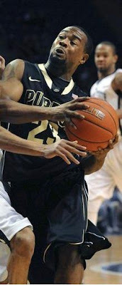 The story of this game was the way that the three biggest names – Moore, Johnson, and Battle – were all nearly silent in the first half. Smooge remained that way as he just never seemed to get the feel of the rattling rims of Bryce Jordan tonight. A number of people noticed the sound of the rims in Happy Valley, but I’ve noticed that before. I don’t know if it’s the acoustics or where they have mics placed…or if they’re really wonky rims. Regardless, the Boilermakers managed to overcome E’Twaun Moore only scoring 4 points – by dumping in 79 more besides his.