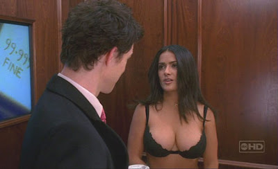 The first one here is a screen grab that I'm not sure where I got... it's from the show she exec produces, Ugly Betty. I don't watch the show but I might have to start. Apparently, not only does Salma make cameos, she does so nearly topless.