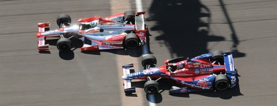 | Bourdais leads Andretti in two of the nearly 2,300 laps turned today at IMS (Greg Griffo photo credit) |