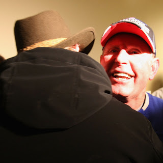 Archie Manning hugs Tom Coughlin. I guess Archie decided to use his "incognito Indiana Jones" disguise.
