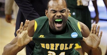-I had Missouri in my Final Four- good pick, right? But, no part of me was rooting for the tigers as Norfolk State calmly controlled that game as if they'd been there. Sure, three or four of the green-clad NSU players had names that sounded like they came from Dublin, and there's no doubt a little luck of the Irish didn't hurt them so close to St. Pat's Day. But their players were amazingly sportsmanlike, it seemed- I saw those guys helping up Mizzou players after contact time and again. Tough not to like an underdog; let alone one that is amazingly-classy.