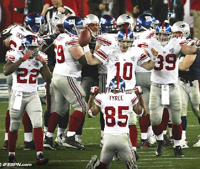 I love this. Love love love it. Championship rings for the losing team in the Super Bowl. Now, before you write to correct me -- yes, I realize the loser often does have a ring made up. Sadly, Tom Jackson of ESPN wears one of his because his Broncos never won it all. But that's just it -- Tom's teams were never really expected to roll through the Super Bowl and so he proudly wears his AFC title ring from whenever it was. But really, does anyone else? I mean, I'm sure the third-stringers who are now financial analysis do... but any members of that Pats team? And who's going to want to trumpet their "perfect season," when, you know... it wasn't perfect? Isn't that kind of false advertising? If you're going to say it's a perfect season and make things up, why not just go the whole way and put "Super Bowl Champions" on the side since you all decided you were the champs ahead of time anyway? Or is it a truth and lies ring? On one side is the 16-0 record and on the other is their (actual) 18-1 record? Fun.