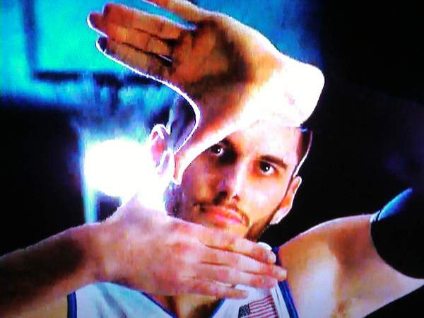 As promised on last night's Handsome Hour, here's the photo capture of Brian Goonbek's white-man-trying-to-be-street rap-gesture during the P Diddy intro to the National Title game on Monday night.
