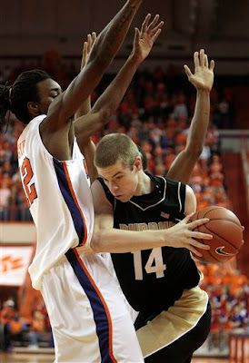 -Rob Hummel is a Cardinal-type player...except maybe a bit more fluid and a better athlete. I do think Cardinal was probably a better shooter. But, Hummel seems to always come up with loose balls when Purdue needs it. I think he's a lot like the goofy-looking players from Minnesota and Wisconsin in past seasons. You look at him and say, "I'm not going to let that guy beat me"...and then he beats you it burns you to the middle.
