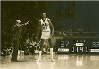 In Market Square Arena, the Boilers' quest for a first title would end at the hands of Cheatin' Larry Brown, as ineligible Kiki Vandeweghe scored 24 and held Carroll to 17 in a 67-62 loss. Carroll would finish his career in style in front of the semi-home crowd, though, with 35 points, 12 rebounds, and 4 blocks in a 75-58 win over Iowa for third place. (They don't do consolation games any more.) Carroll's 35 is the fifth-best total for a Boiler in NCAA tournament action; the 12 boards are tied for ninth-best, and the 4 blocks are tied for second. He finished his career as a consensus All-American; whether or not his reputation as an NBA player is deserved is a topic for another time, but in college, there was no question as to his greatness.