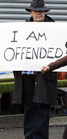Something that is exemplified on Twitter is our society's knee-jerkyness around being "offended." Everybody is put off my something every damn day. For some reason, we've become conditioned to immediately look for the offensive content in every statement, article, interaction, etc. I don't really know why this is -- we used to call this being overly PC, but that term seems to have gone away. (Politically correct, not personal computer.) Instead, it's just become accepted that the goal of everyone is to figure out how the most recent article on each and every site is offensive and to whom.