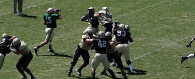 Yeah, I know practice is not officially over for Purdue, but here are a couple of parting shots from what I saw.-I'd like to see Henry on the field in the fall...not as a QB. I'm one of the guys who really liked his potential when he came in, but I think it'd be a pretty big waste for him to stay back there. Plus, I think his legs are way more impressive than his arm. This is just my take.