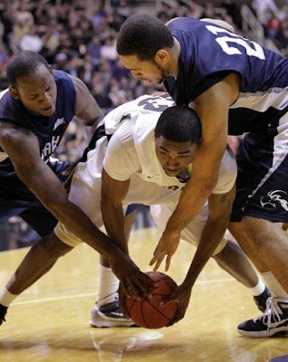 The team seemed to go to sleep for stretches in the second half as well, at one point committing five straight turnovers -- mostly unforced -- before Matty decided that with nine minutes to go it was time for the starters to go back in to put a boot on the throat of the suddenly spry North Florida kids. The lead had ballooned almost to 30 a few minutes earlier, but the sloppy Purdue play allowed North Florida to close to within 15 at one point. The game was never in doubt but Purdue's resolve definitely was. It almost looked to me like the Boilers simply got bored in the second half. Leading by 20 and nearly doubling up your opponent by halftime will sometimes do that, I guess.