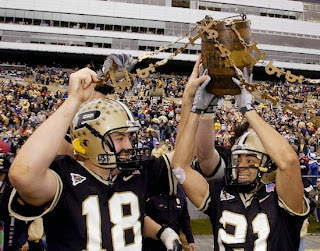 As mentioned here before, by all accounts, Danny Hope is a good guy. He's just overmatched at this level. His players are no doubt aware of his status, and would love to send him out on a winning note if they knew he was going to be fired. Emotion means a lot at this level, even in a rivalry game, where emotions already run high. As much as Purdue has struggled this year, as much as Indiana has improved, I think the Boilers are going to give Hope one last gift before he moves on to his next position. Pack your suitcase and start looking for hotel rooms in Texas, folks.