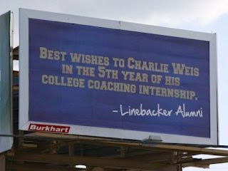 Also, think about this as you enjoy delusional Domers chattering on about how Urban Meyer wishes he could coach at Notre Dame: Aside from his first two years, when he was relying on Willingham recruits, Chuck Weis never even finished a regular season over .500. That's kind of jarring when you think about it.