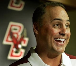 If this is true, it's kind of ridiculous and really bad for BC football. In recent years, when Purdue football has continued the downward trend of mediocrity and I, on one or two occasions, got so mad I uttered something about firing Coach Tiller, Boilerdowd often calmed me by pointing out that the University just can't do that. You can't bring on a guy who does a good job and then, before he can leave on his own terms, boot him out. And the reason you can't do that is because of how other coaches will look at the job. If you're an up-and-coming coach who has a couple of decent options, and one of the programs has a history of firing coaches for interviewing for jobs in the offseason, well, that's not exactly an appealing place to be.
