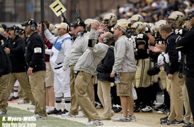 The Ross Ade Homecoming crowd of a MAC-esque 45,000 quiet fans ooohed and ahhhed at the preparedness of this Boiler squad. Senior in the school of Engineering, Ryan Van Lashen said this as he left the stadium (with 6:00 left in the fourth), "Not everybody was here during the '05 season...I was lucky enough to be in this student section that season too. So what we're watching is the culmination of four and a half seasons of thinking and playing right on the edge of poorly..."